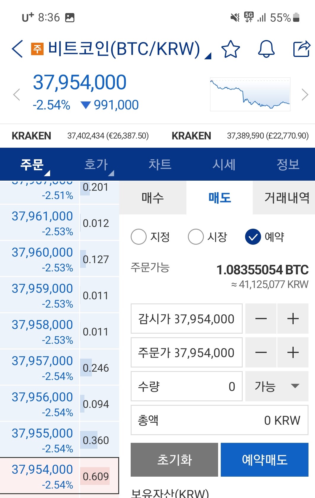 예약가 매수 4. 코인 매도(모바일 버전)